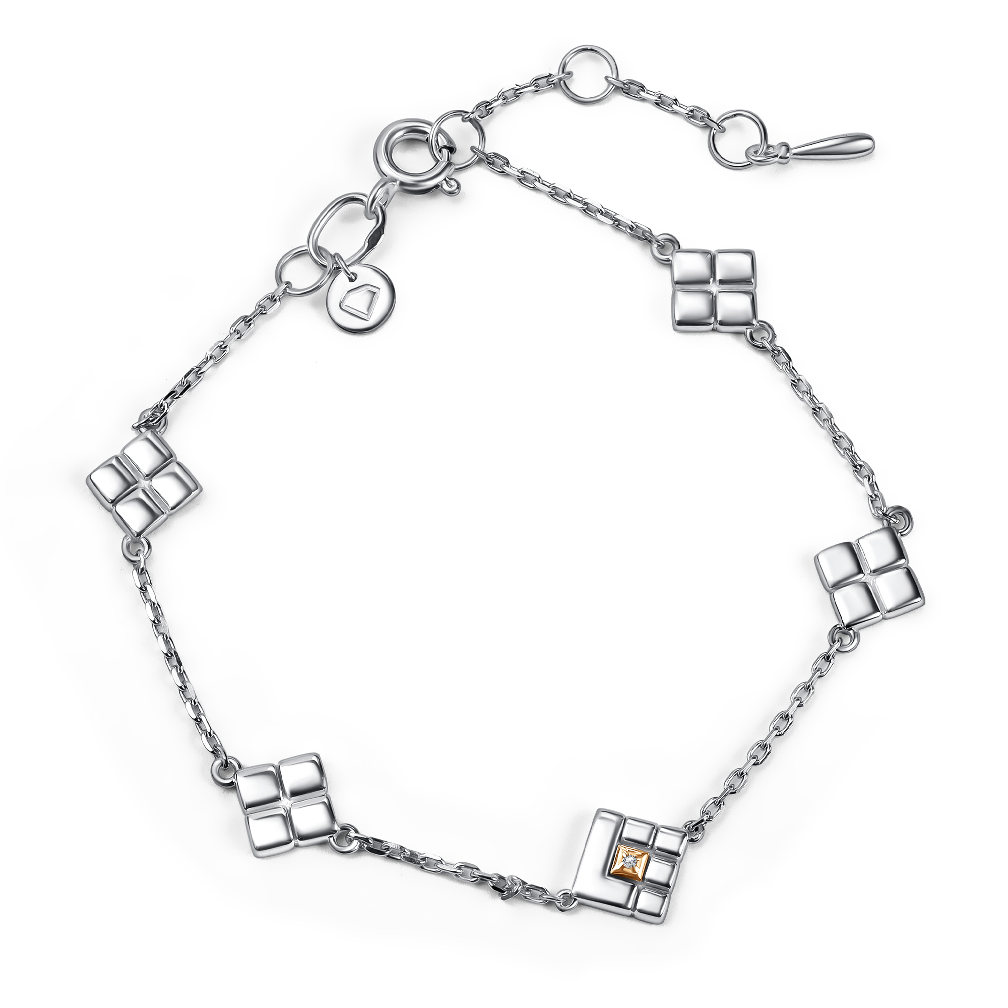 Браслет из серебра с камнем Бриллиант, вставками золота