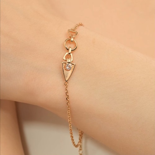 Браслет «Контрасты» из красного золота 585 пробы на цепочке с натуральным white-топазом из коллекции PLATINA LINE от ювелирного бренда PLATINA. Длина браслета регулируется. Дизайн украшения в стиле минимализм и геометрия. Декоративный элемент представляет композицию из круга, миниатюрных треугольников и крупного треугольника с матовой поверхностью. Браслет инкрустирован натуральным white-топазом, закрепка которого выполнена вручную. Украшение универсально: подойдёт к повседневному и деловому гардеробу, а также для коктейльных и вечерних мероприятий.