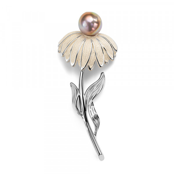 Брошь из серебра с камнем Жемчуг, вставками эмали