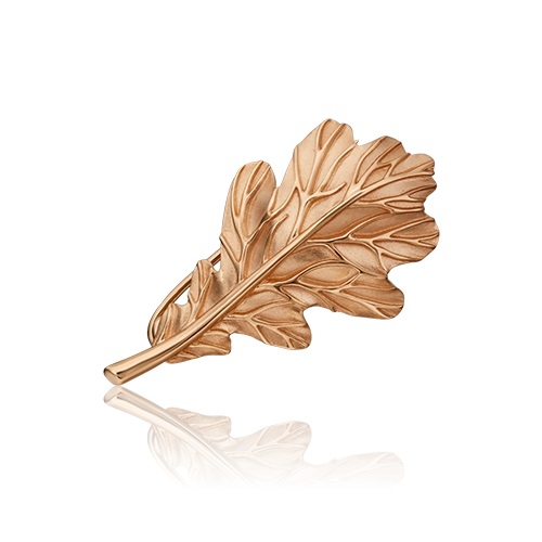 Брошь «Лист дуба» из красного золота 585 пробы. Дизайн украшения в стиле флористика. Глянцевый блеск золотых «прожилок» эффектно контрастирует с сатинированной поверхностью листа. Надёжный и удобный замок обеспечивает комфорт при длительном ношении. Брошь подойдёт к повседневному или деловому стилю.
