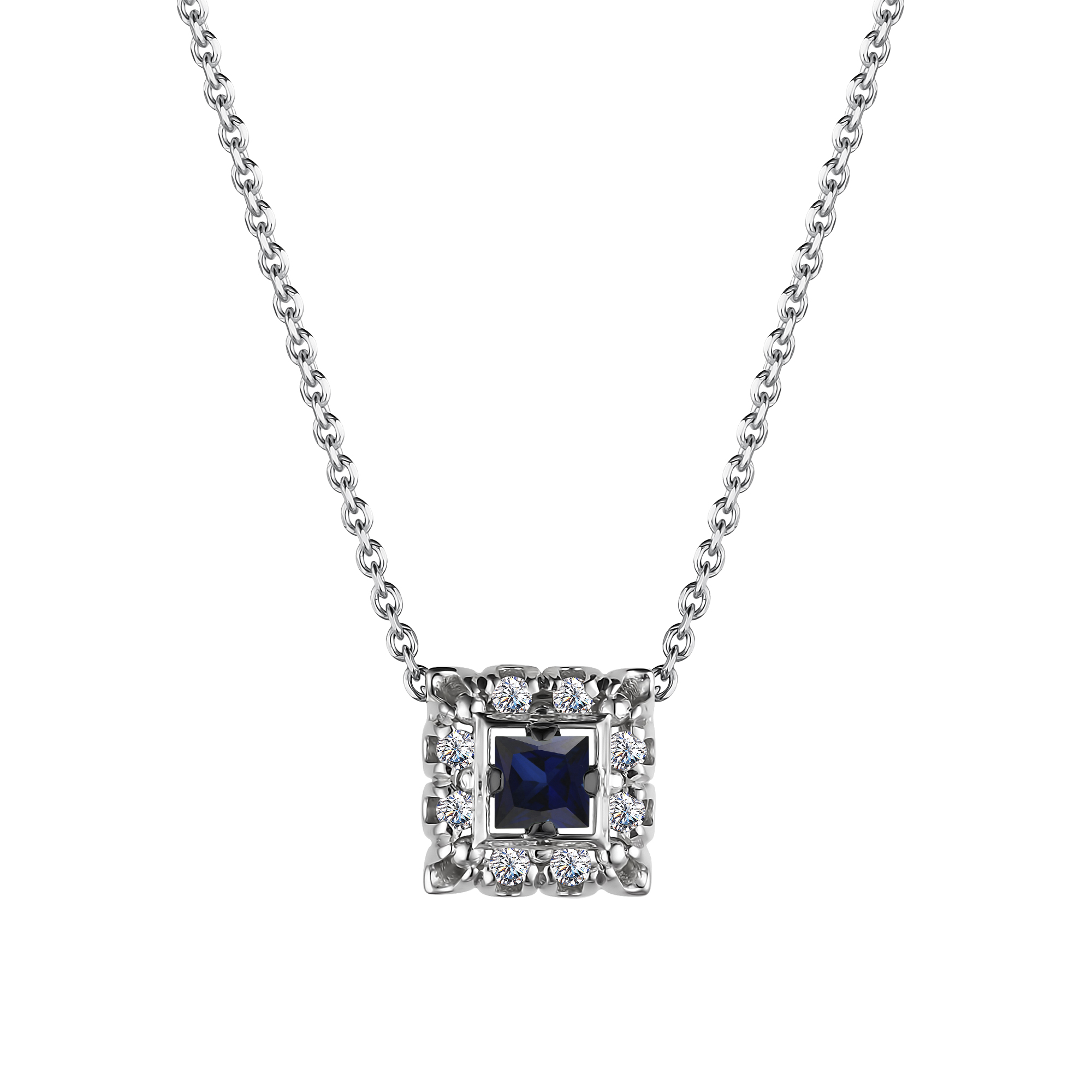 Колье, Белый | 8 Бр кр-57 0,077Ct 4/5А ,1 Сапфир Кв 0,177Ct 2/2 |