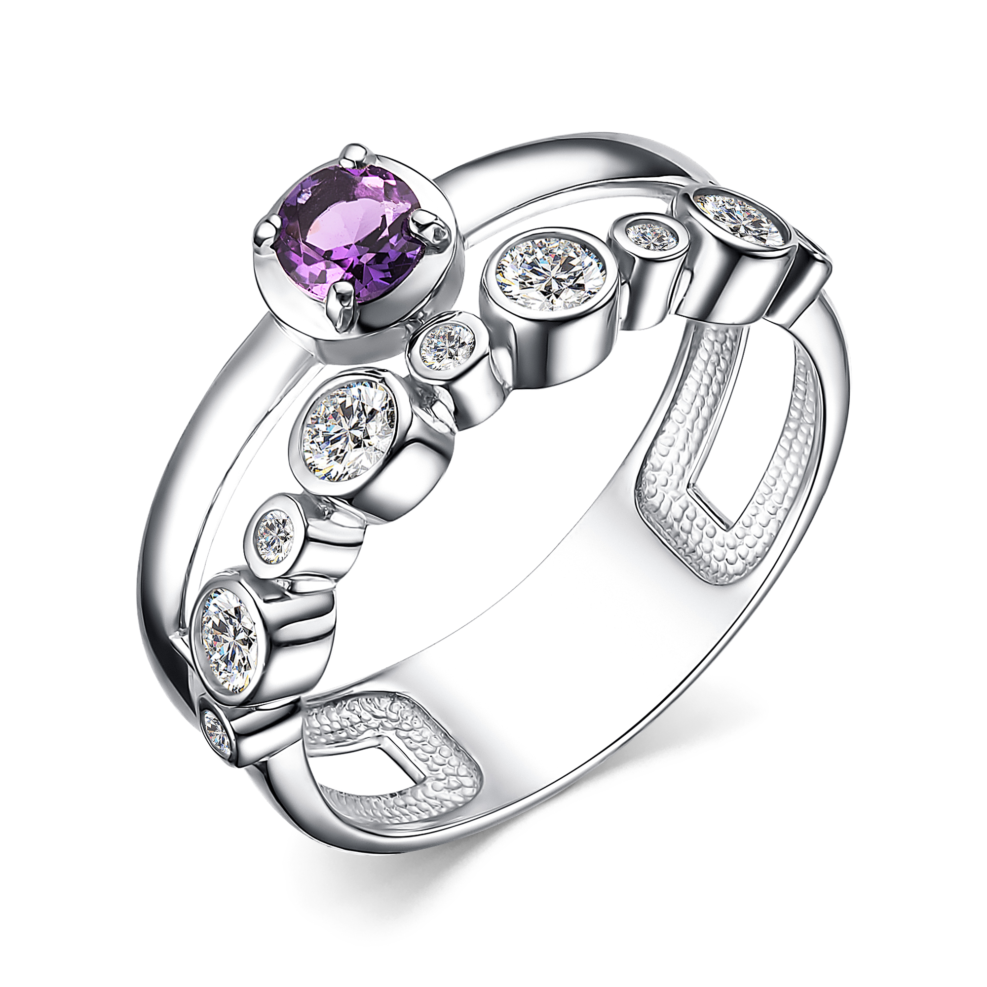 Кольцо | Аметист ,Фианит |