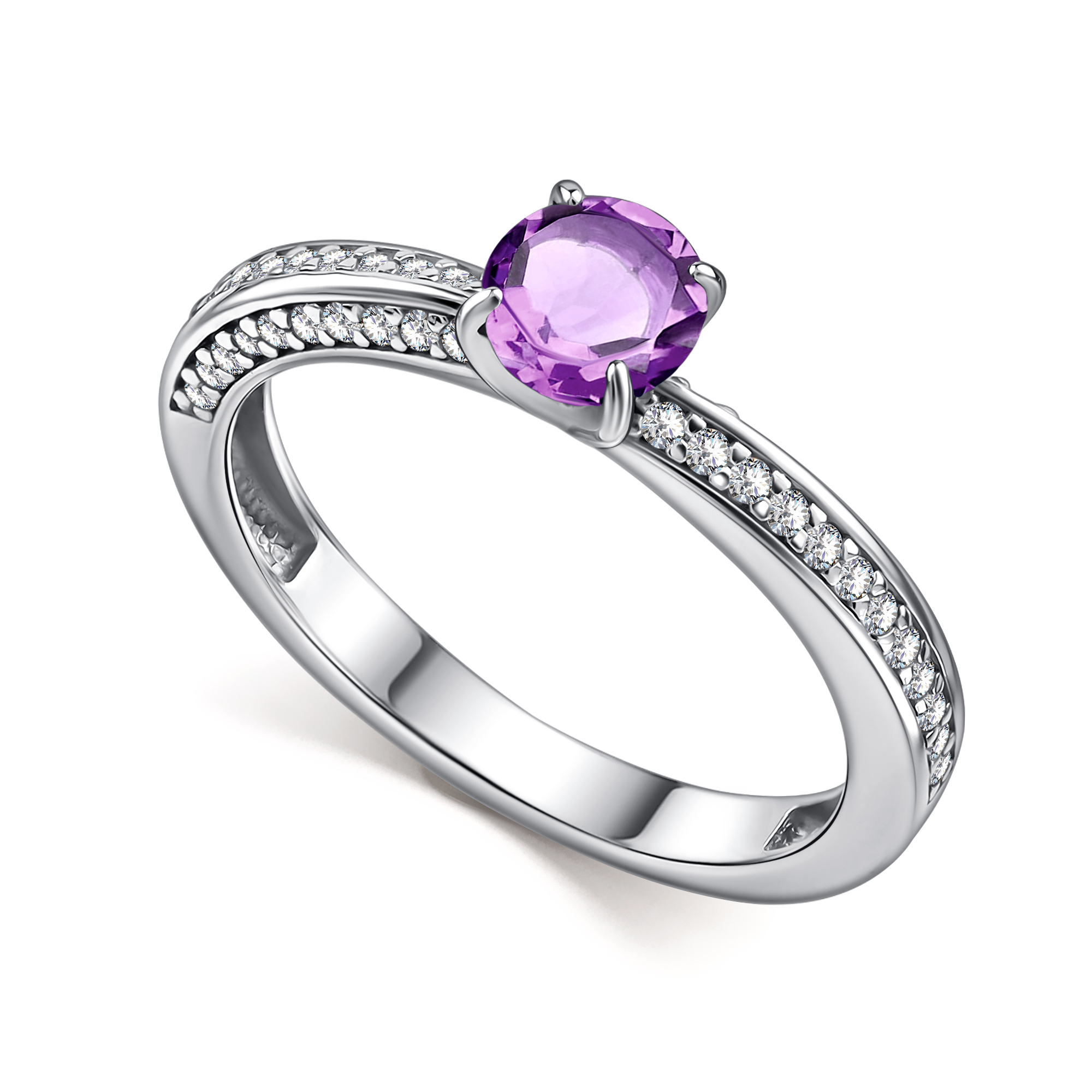 Кольцо | Аметист ,Фианит |