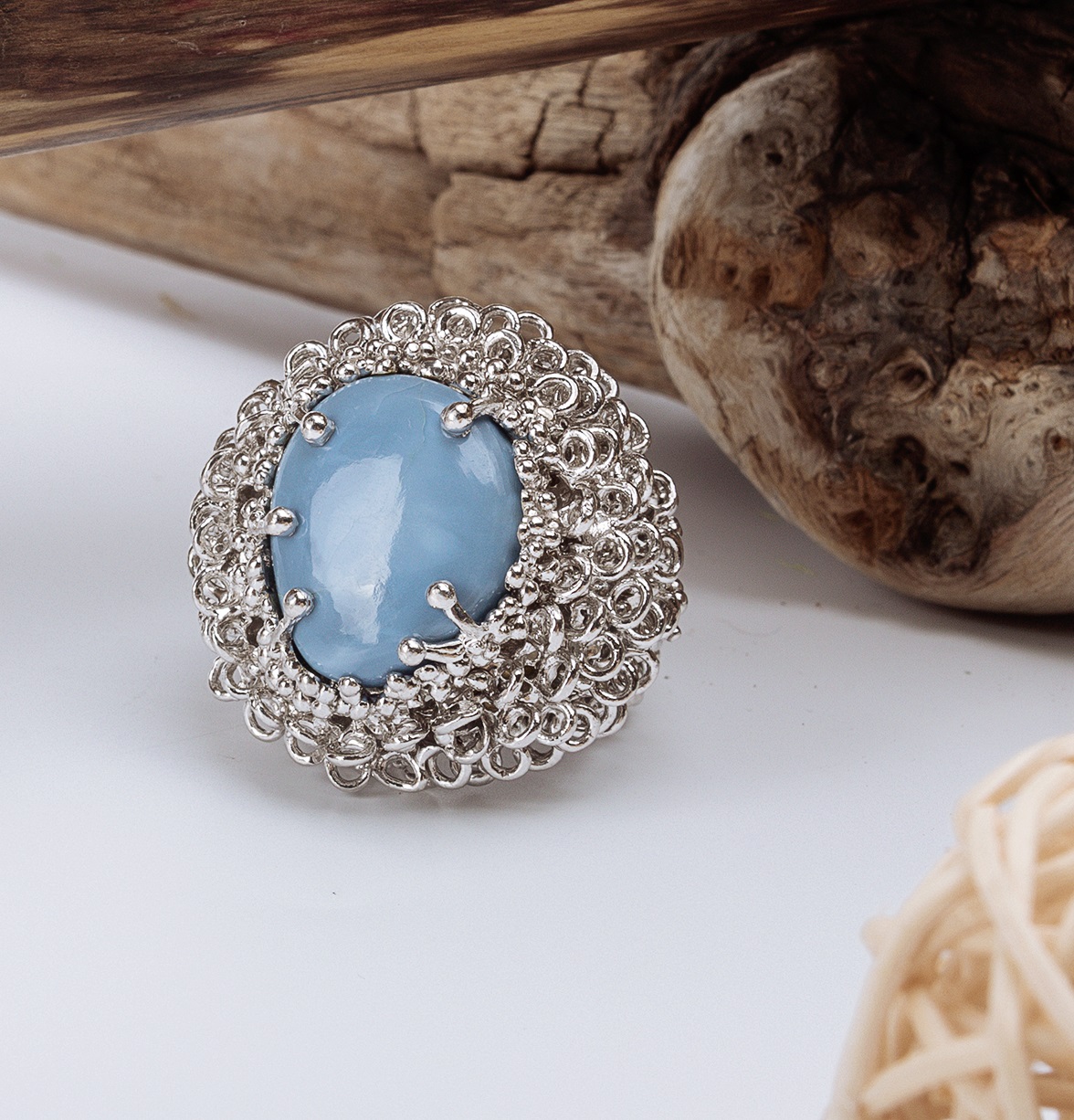 Кольцо "Голубая мечта" | Бр Черный ,Опал Голубой |