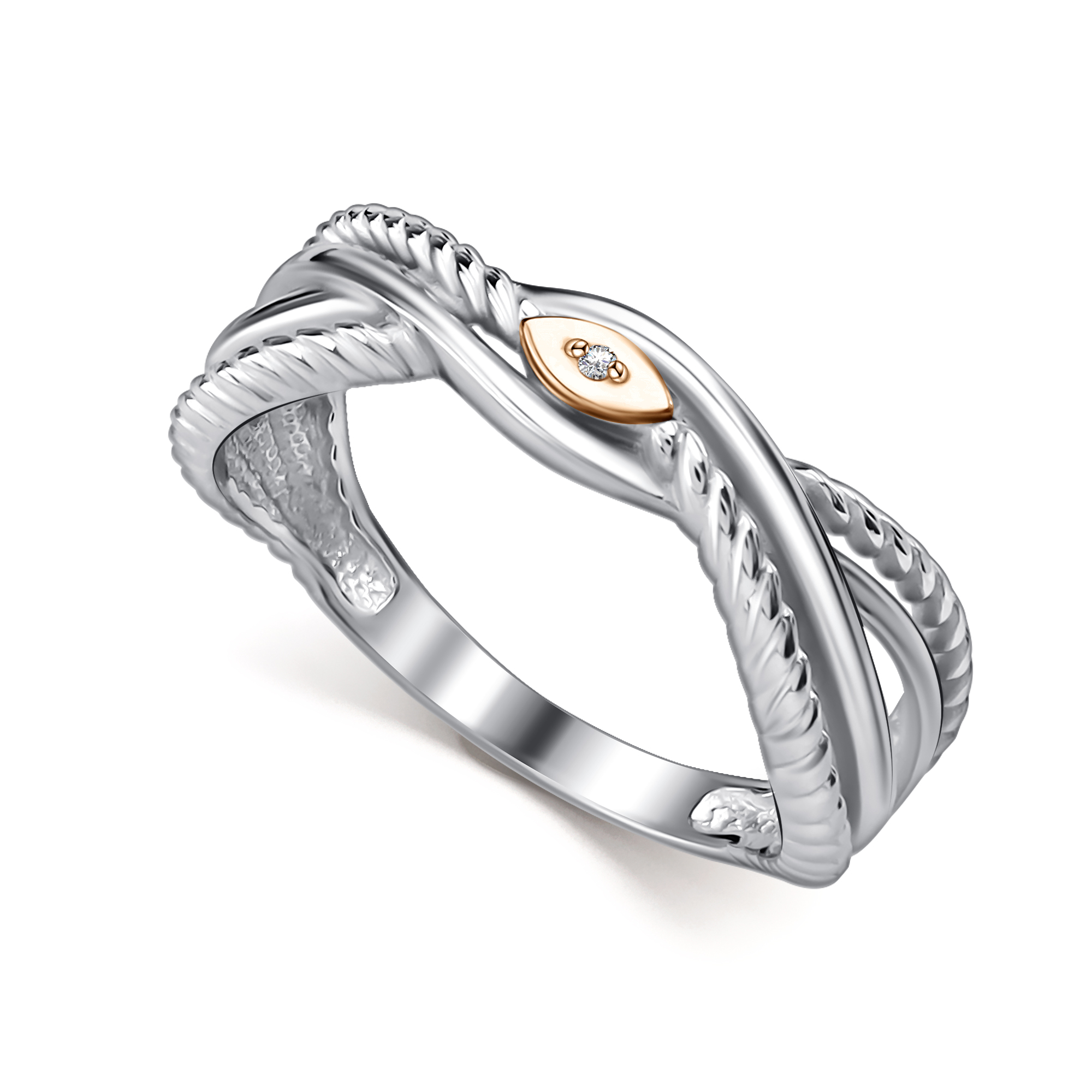 Кольцо из серебра с камнем Бриллиант, вставками золота
