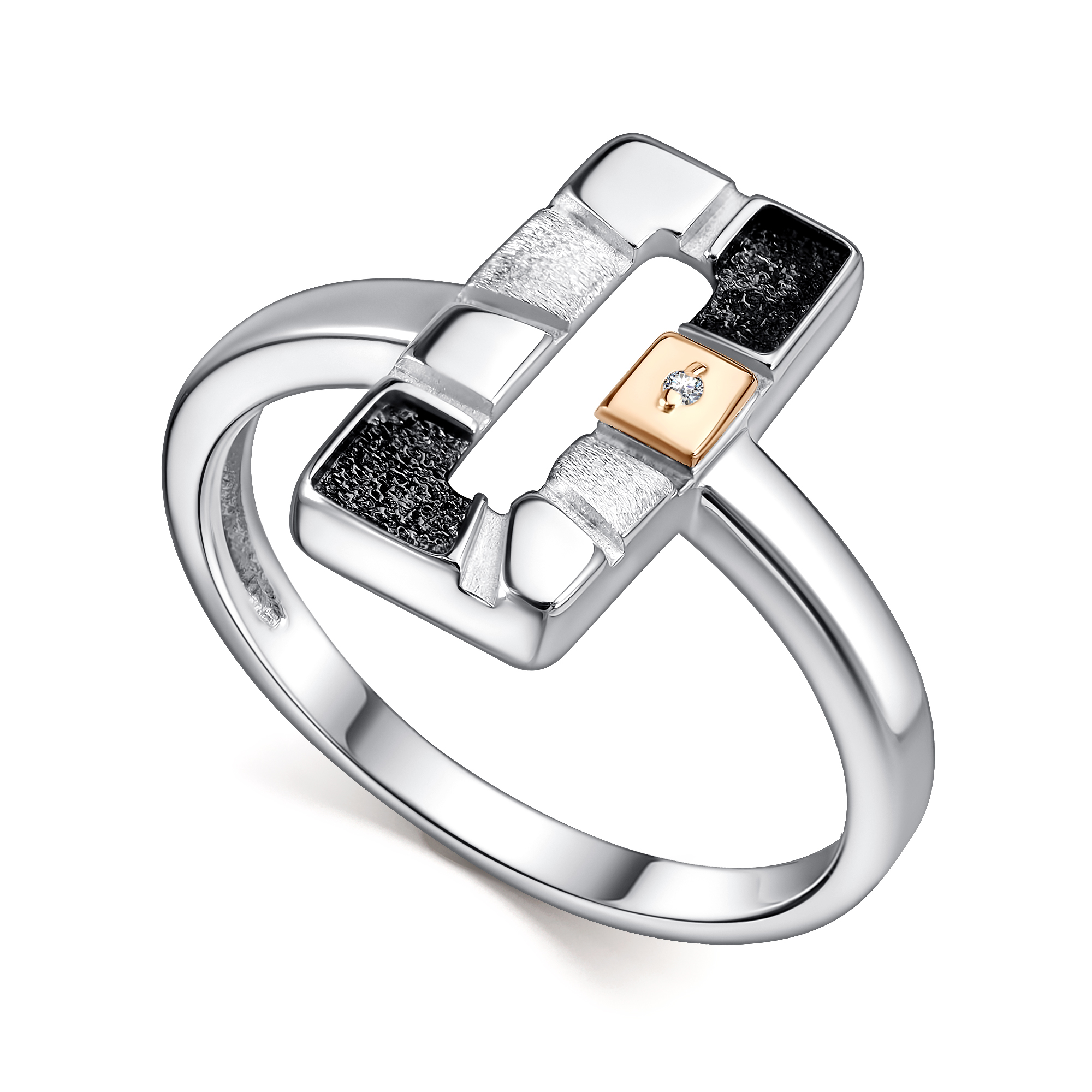 Кольцо из серебра с камнем Бриллиант, вставками золота