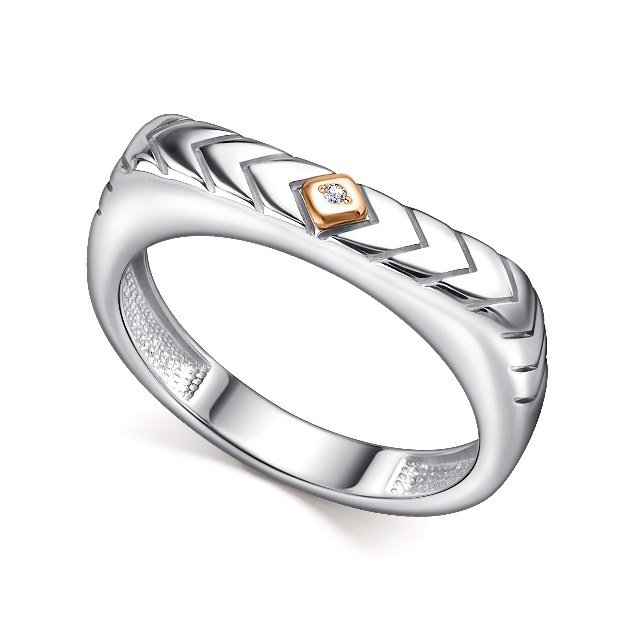 Кольцо из серебра с камнем Бриллиант, вставками золота