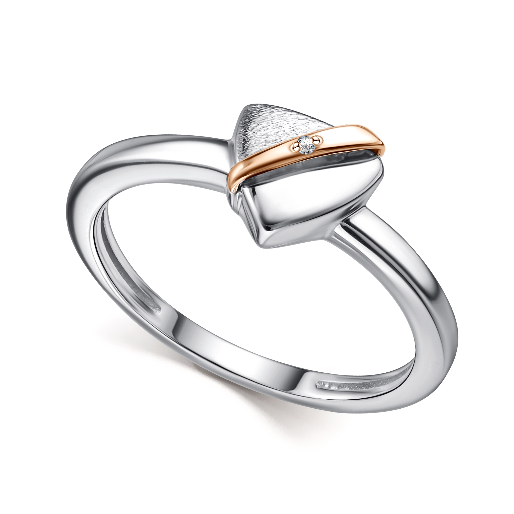 Кольцо из серебра с камнем Бриллиант, вставками золота