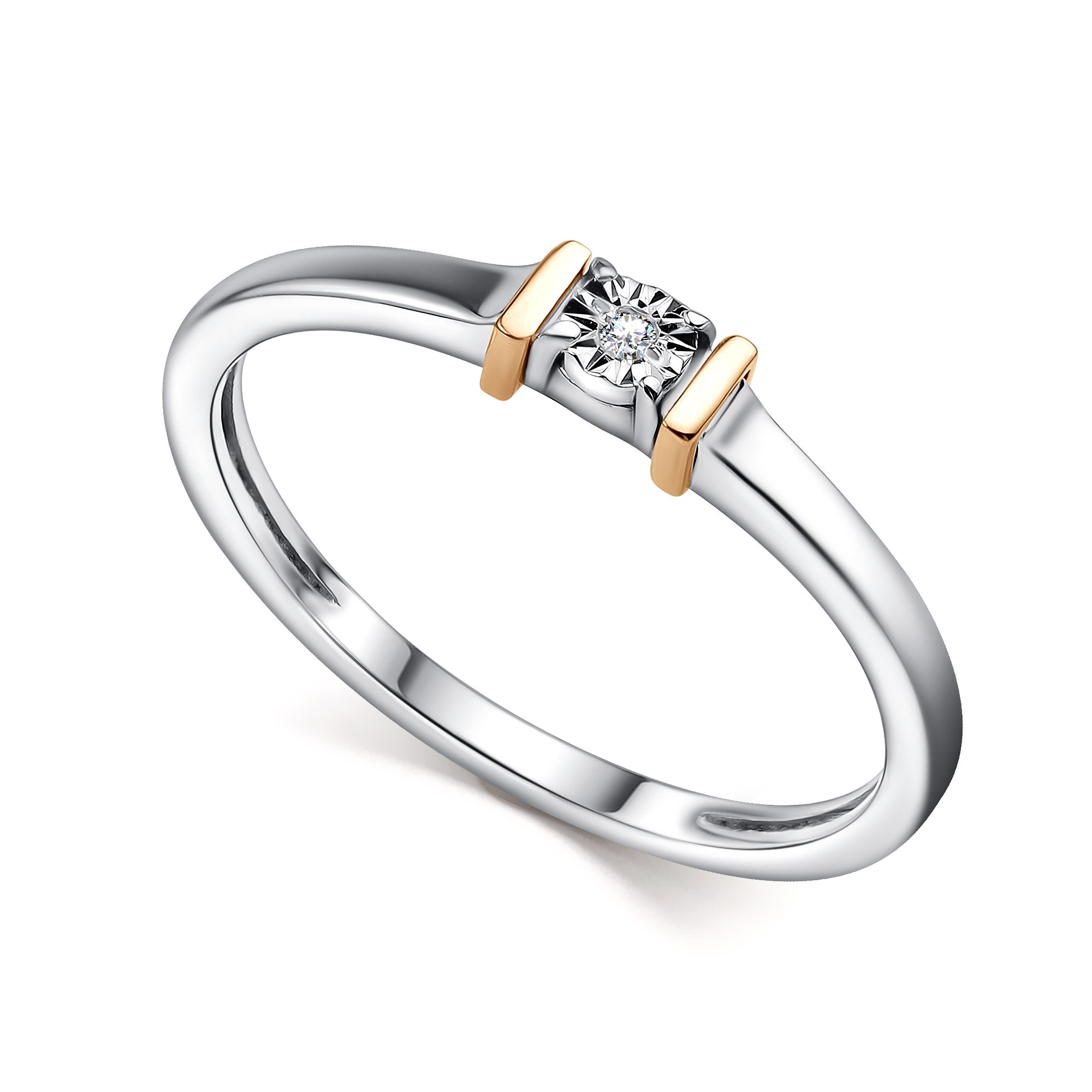 Кольцо из серебра с камнем Бриллиант, вставками золота
