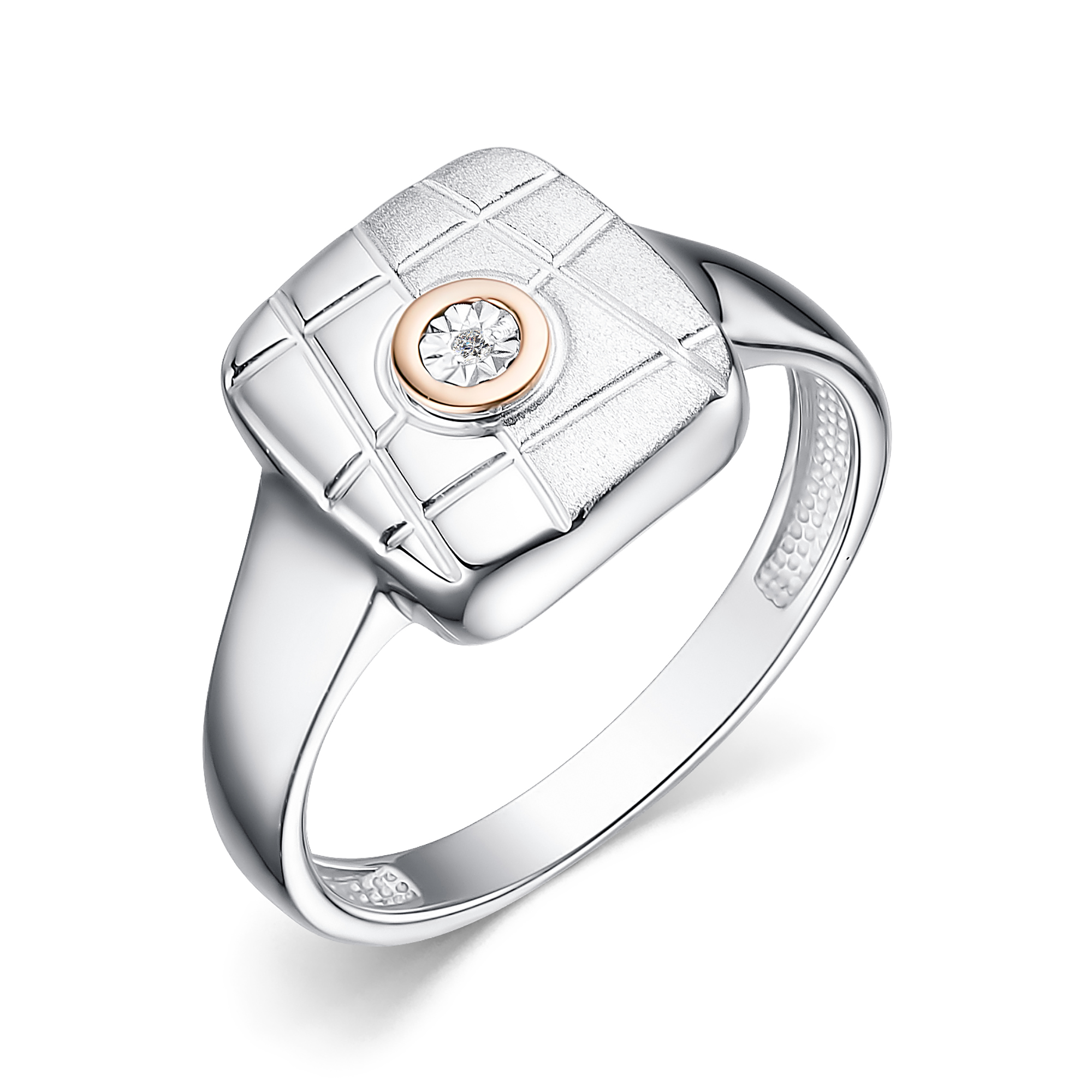 Кольцо из серебра с камнем Бриллиант, вставками золота