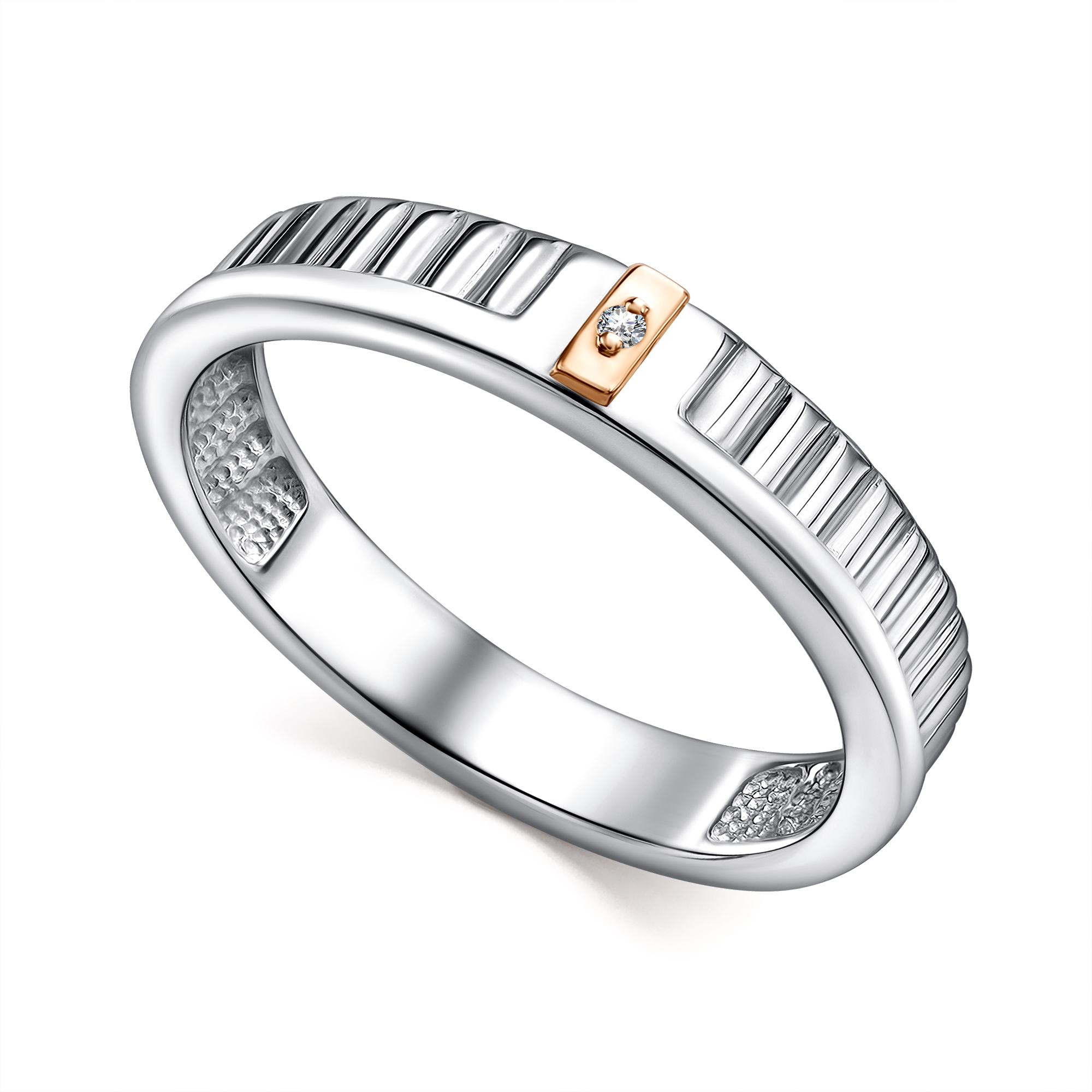 Кольцо из серебра с камнем Бриллиант, вставками золота