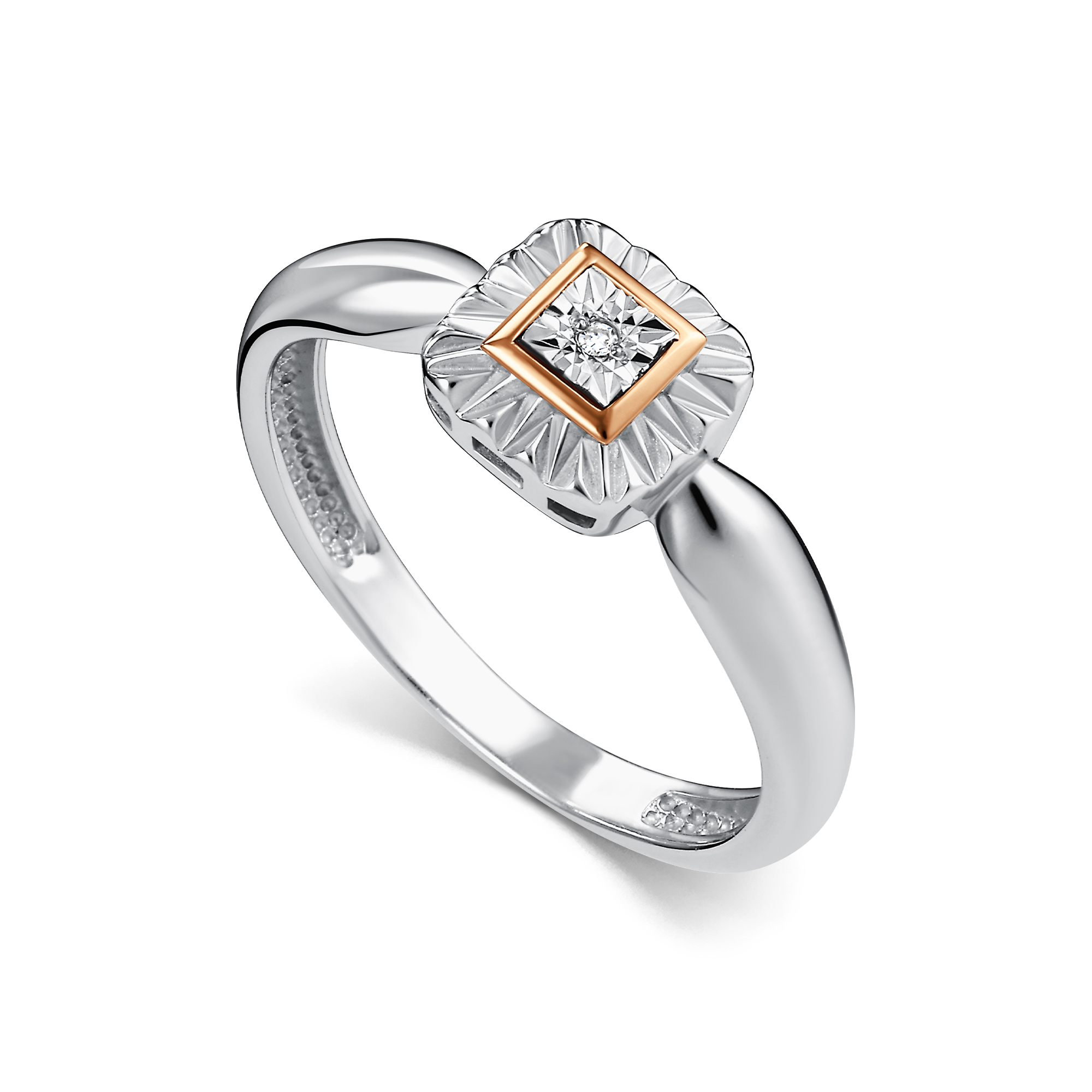 Кольцо из серебра с камнем Бриллиант, вставками золота