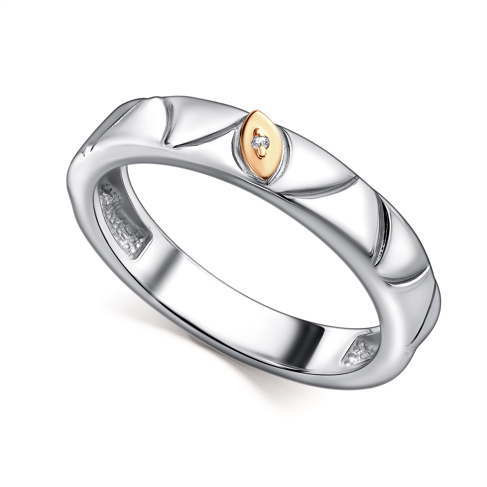 Кольцо из серебра с камнем Бриллиант, вставками золота