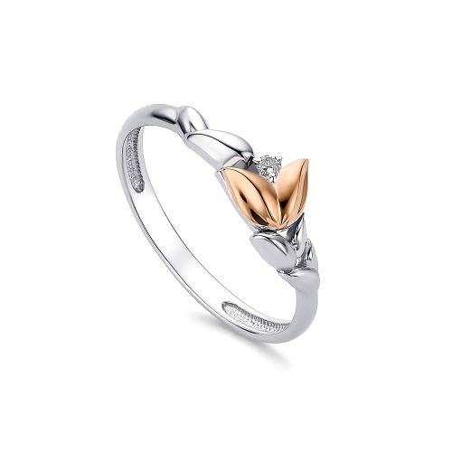 Кольцо из серебра с камнем Бриллиант, вставками золота
