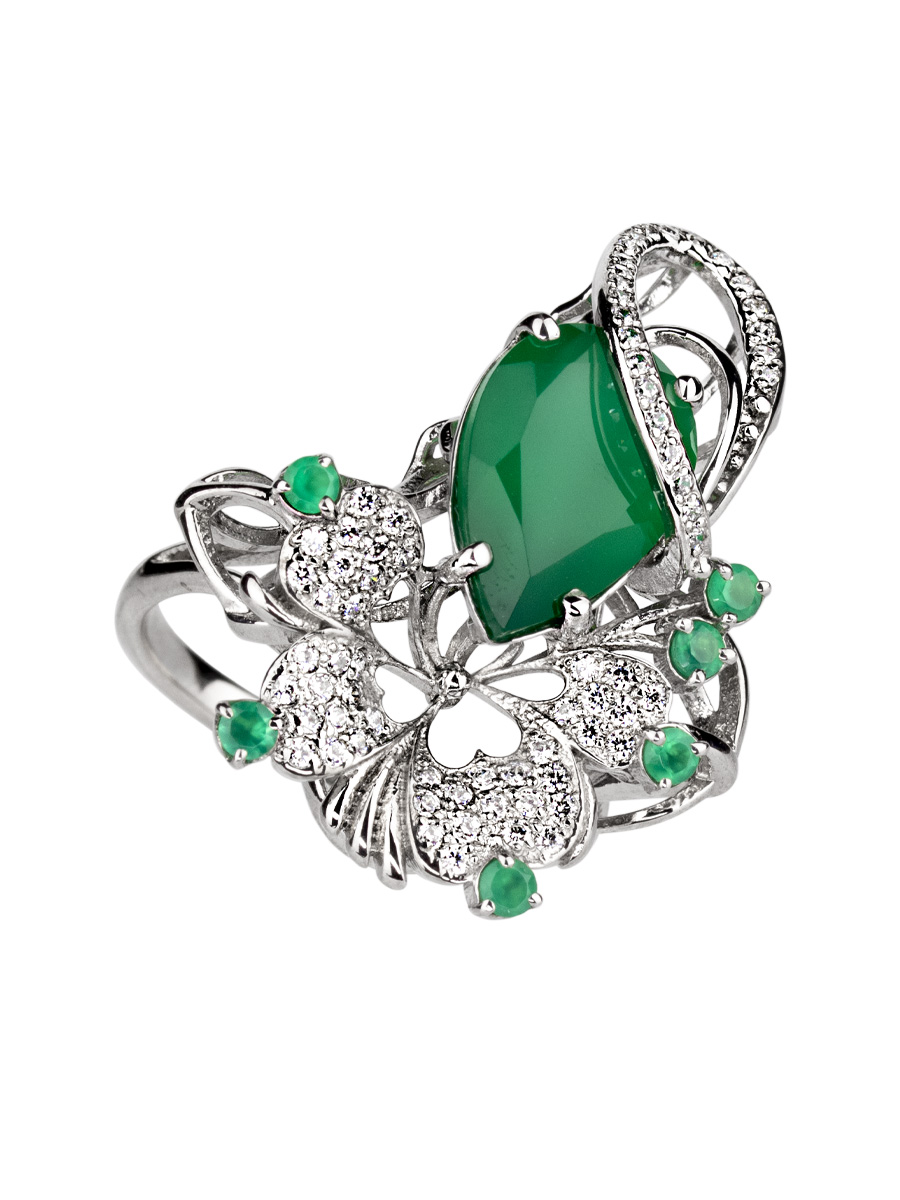 Кольцо | Оникс зелёный ,Фианит