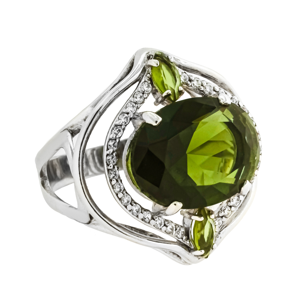 Кольцо | Ситалл Турмалиновый ,Фианит