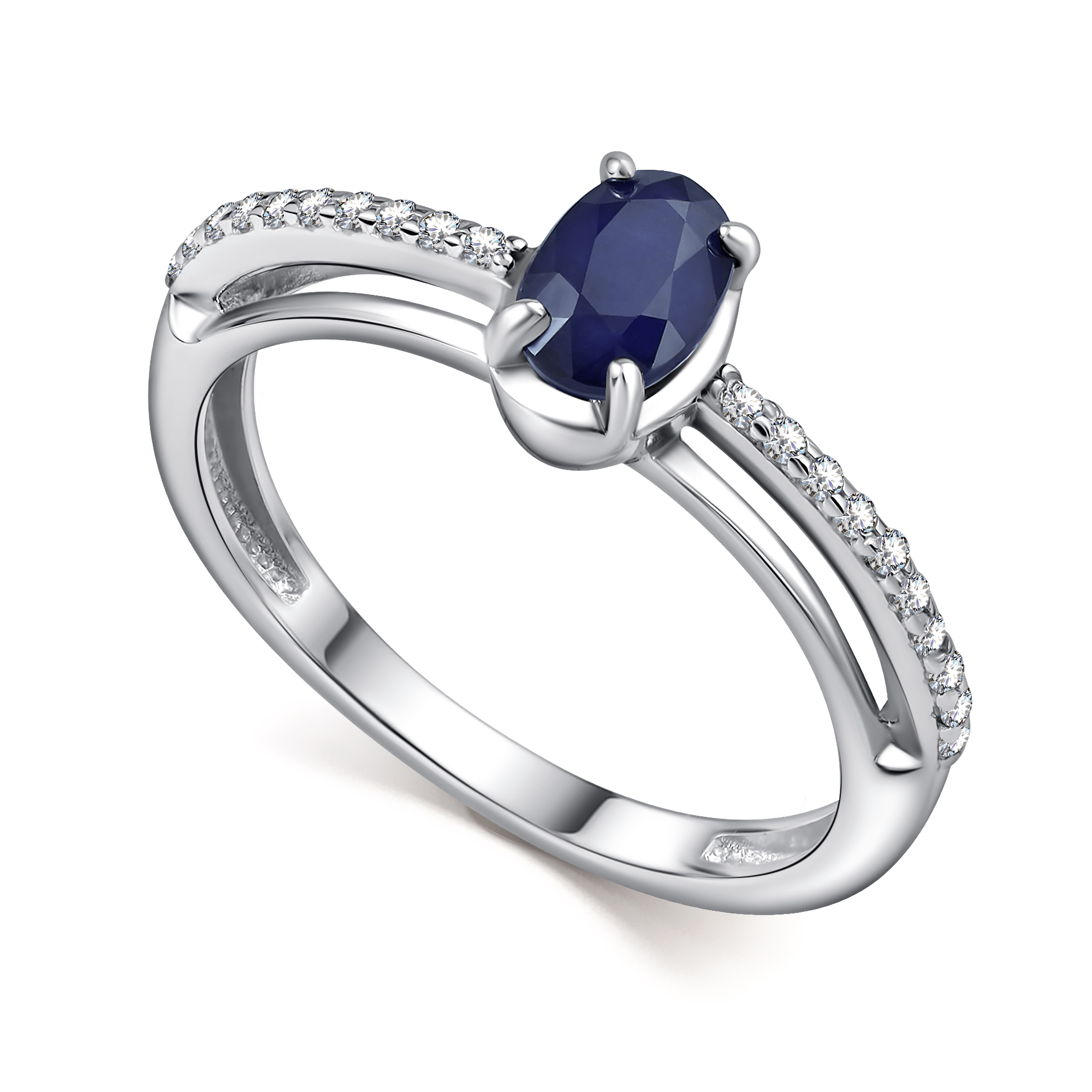 Кольцо | 1 Сапфир Ов 2/2 ,Фианит |