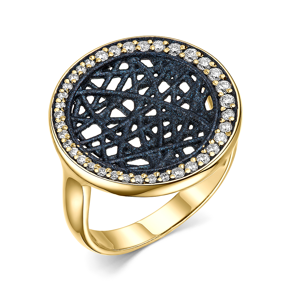Кольцо из серебра с камнем Фианит, вставками эмали
