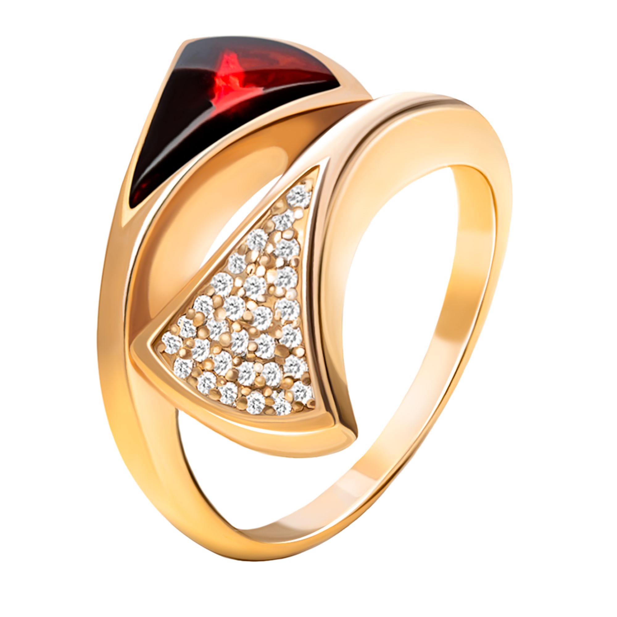 Кольцо, Позолота | Янтарь Коньячный ,Фианит |