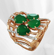 Кольцо | Ситалл Хризолитовый ,Фианит |