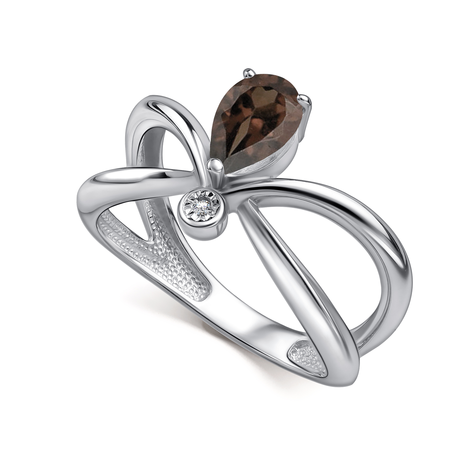 Кольцо из серебра с камнем Раухтопаз, Бриллиант