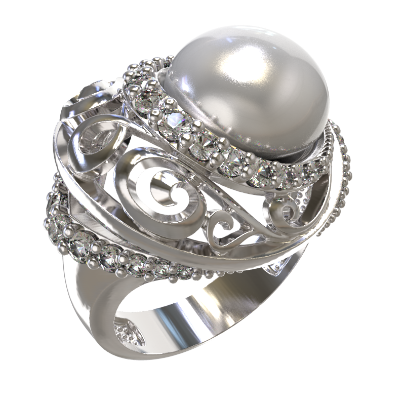 Кольцо | Жемчуг ,Фианит
