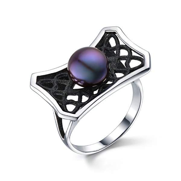 Кольцо из серебра с камнем Жемчуг, вставками эмали