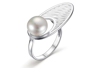 Кольцо из серебра с камнем Жемчуг, вставками эмали