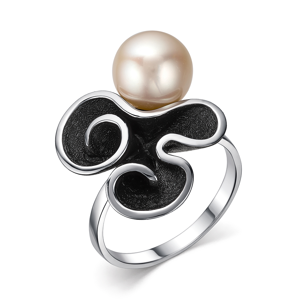 Кольцо из серебра с камнем Жемчуг, вставками эмали