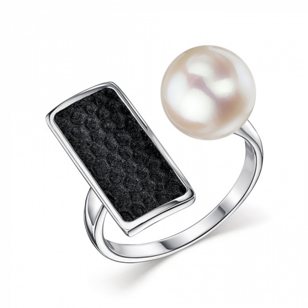 Кольцо из серебра с камнем Жемчуг, вставками эмали