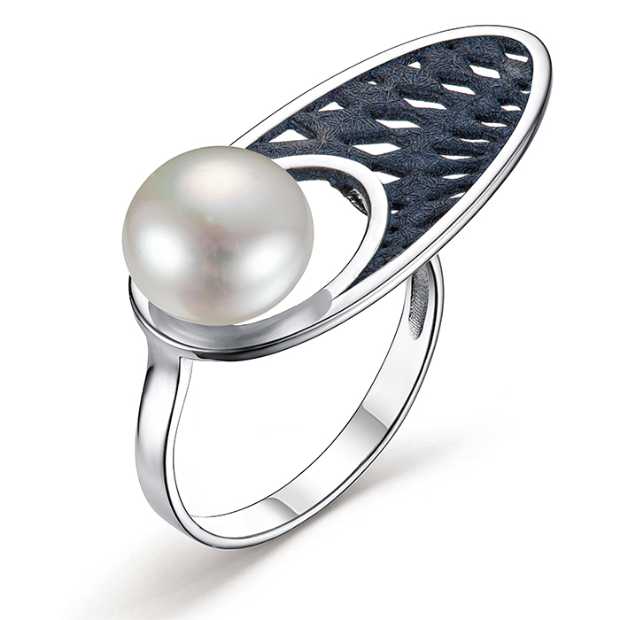 Кольцо из серебра с камнем Жемчуг, вставками эмали