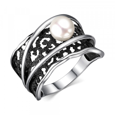 Кольцо | Жемчуг ,Эмаль Черный |
