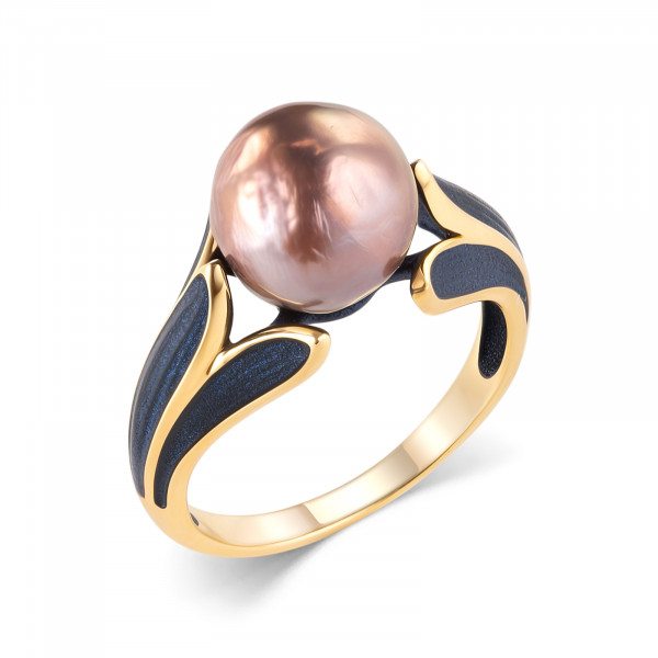 Кольцо из серебра с камнем Жемчуг, вставками эмали