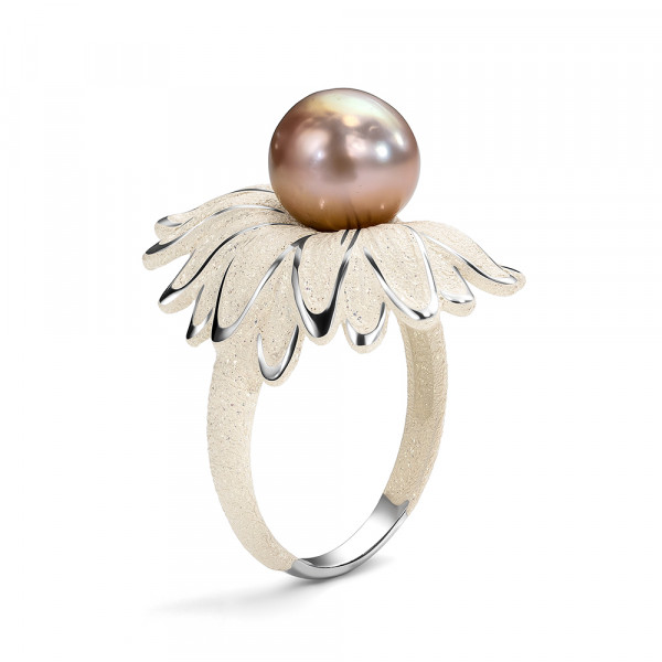Кольцо из серебра с камнем Жемчуг, вставками эмали