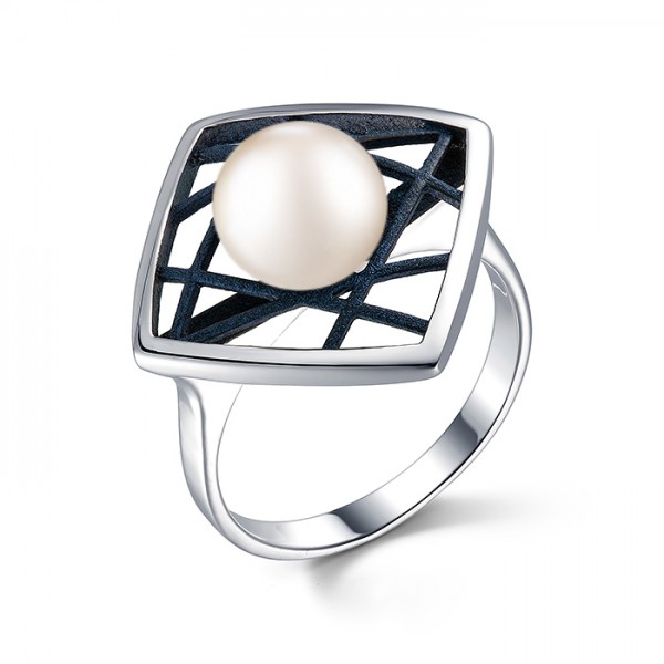 Кольцо из серебра с камнем Жемчуг, вставками эмали