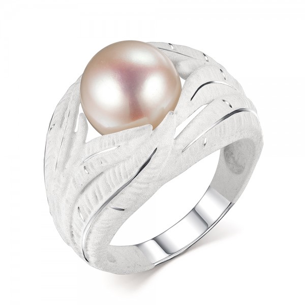 Кольцо из серебра с камнем Жемчуг, вставками эмали
