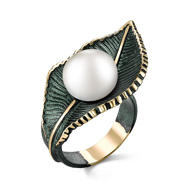 Кольцо из серебра с камнем Жемчуг, вставками эмали