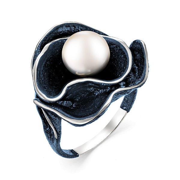 Кольцо из серебра с камнем Жемчуг, вставками эмали