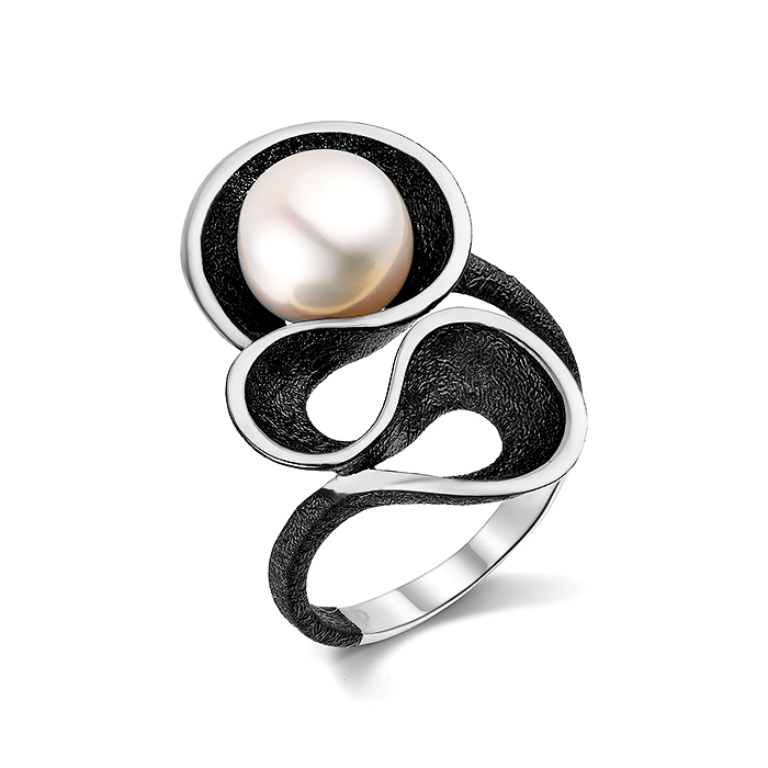Кольцо из серебра с камнем Жемчуг, вставками эмали