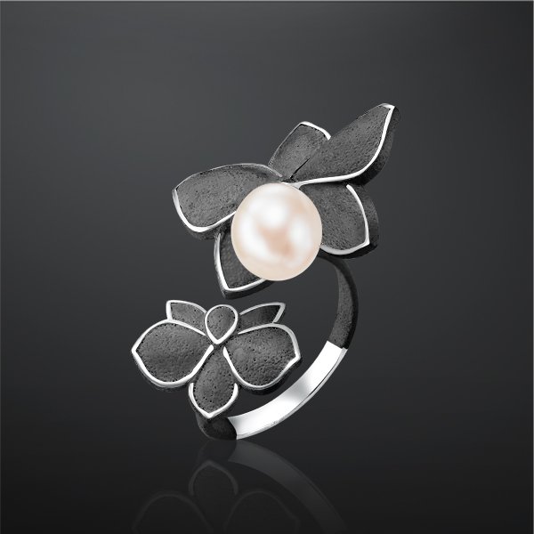 Кольцо из серебра с камнем Жемчуг, вставками эмали