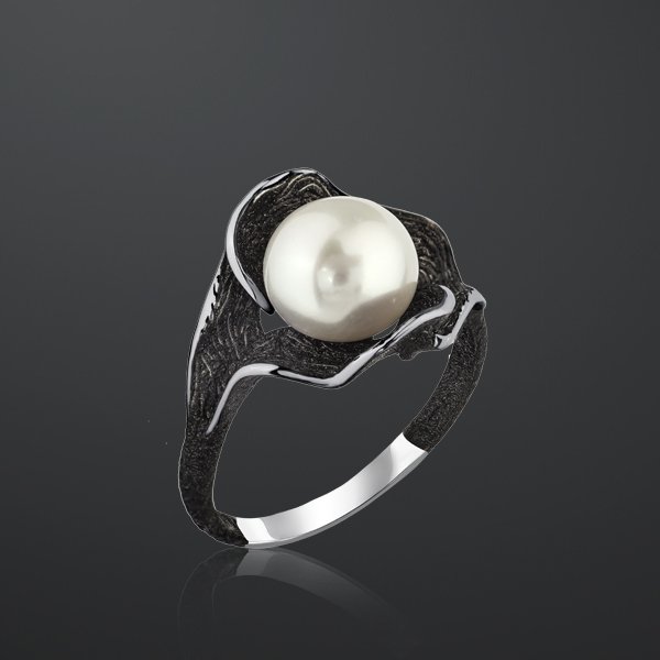 Кольцо из серебра с камнем Жемчуг, вставками эмали