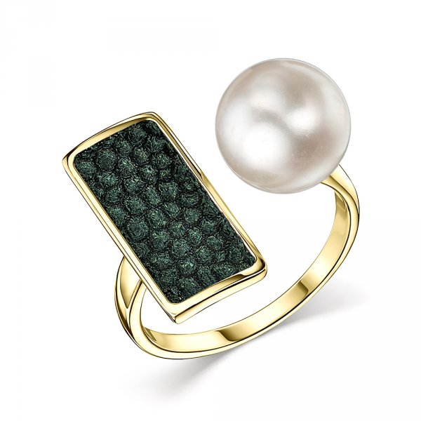 Кольцо, Золотое покрытие | Жемчуг ,Эмаль Зеленый