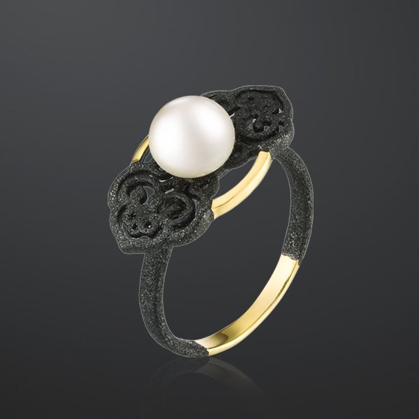 Кольцо из серебра с камнем Жемчуг, вставками эмали