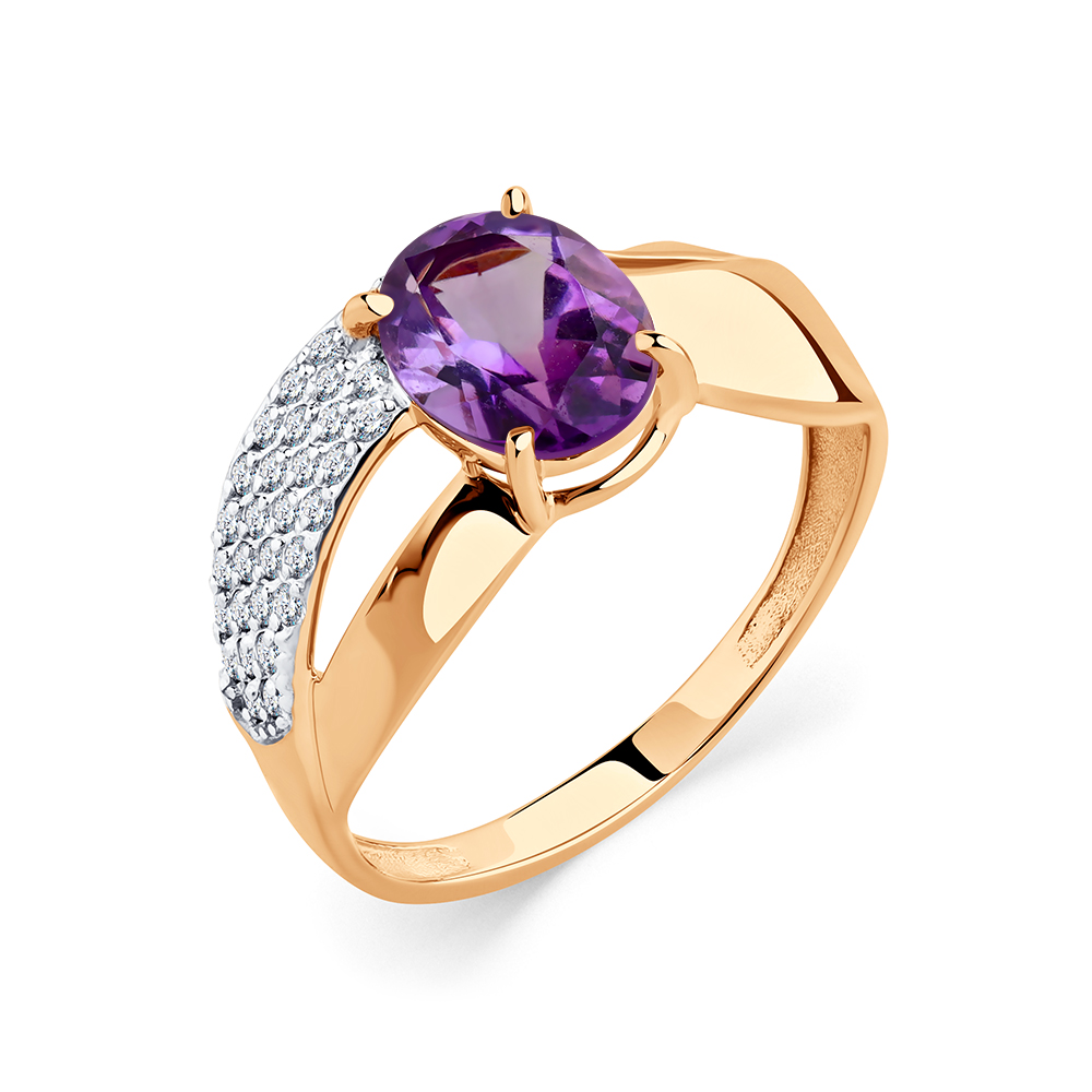 Кольцо из золота с камнем аметист, Фианит