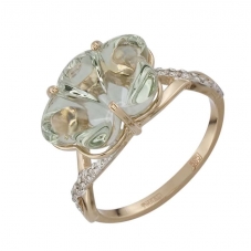 Кольцо | Кварц Оливковый ,Куб цирконий |