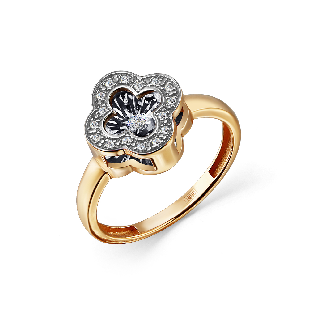 Кольцо, Комбинированное | 16 Бр кр-17 0,054Ct 2/3А ,1 Бриллиант танцующий кр-57 0,041 3/6А |