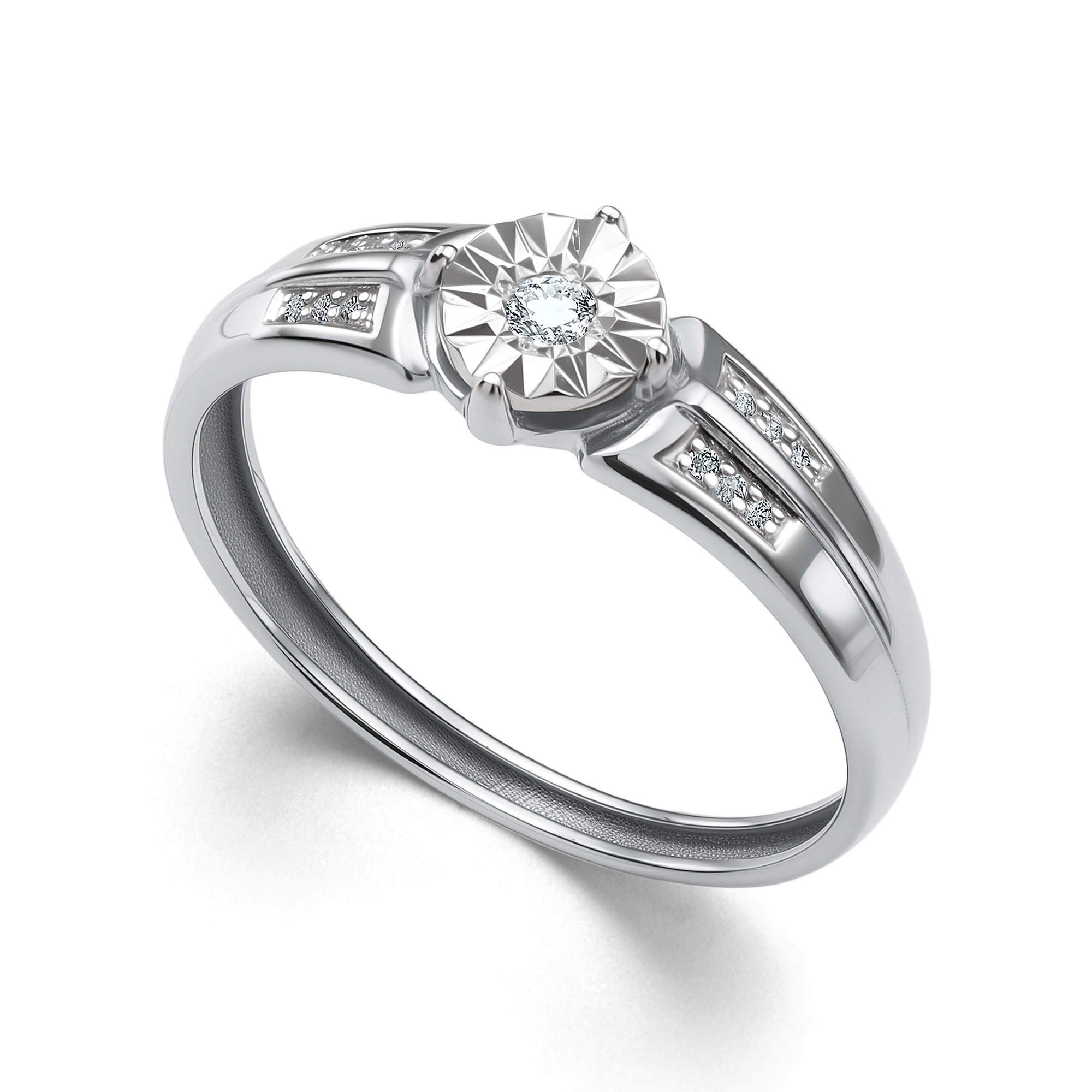 Кольцо, Белый | 1 Бр кр-57 0,045Ct 4/6А ,12 Бр кр-17 0,029Ct 2/3А |