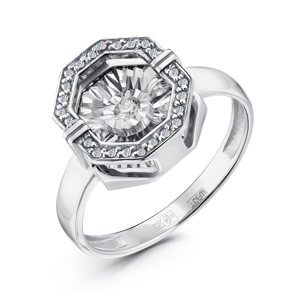 Кольцо, Белый | 16 Бр кр-17 0,049Ct 2/3А ,1 Бриллиант танцующий кр-57 0,042 4/5А |
