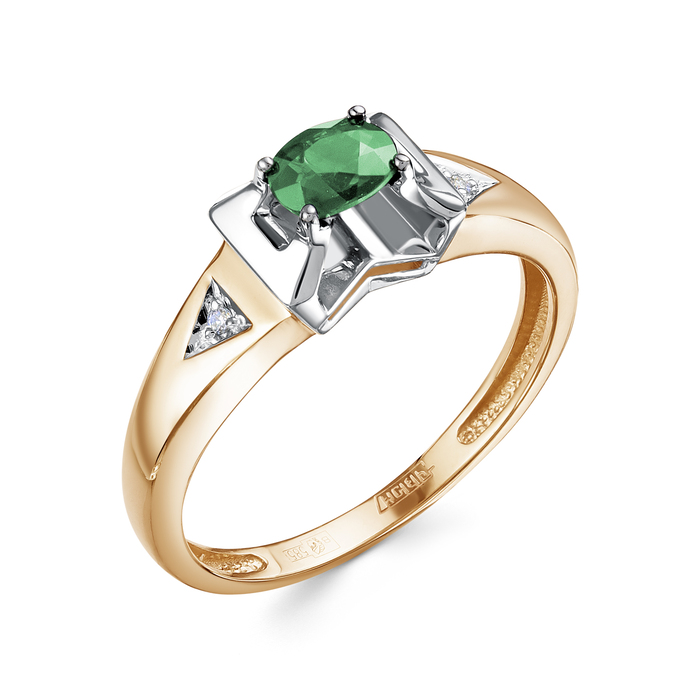 Кольцо из золота с камнем Бриллиант, Изумруд