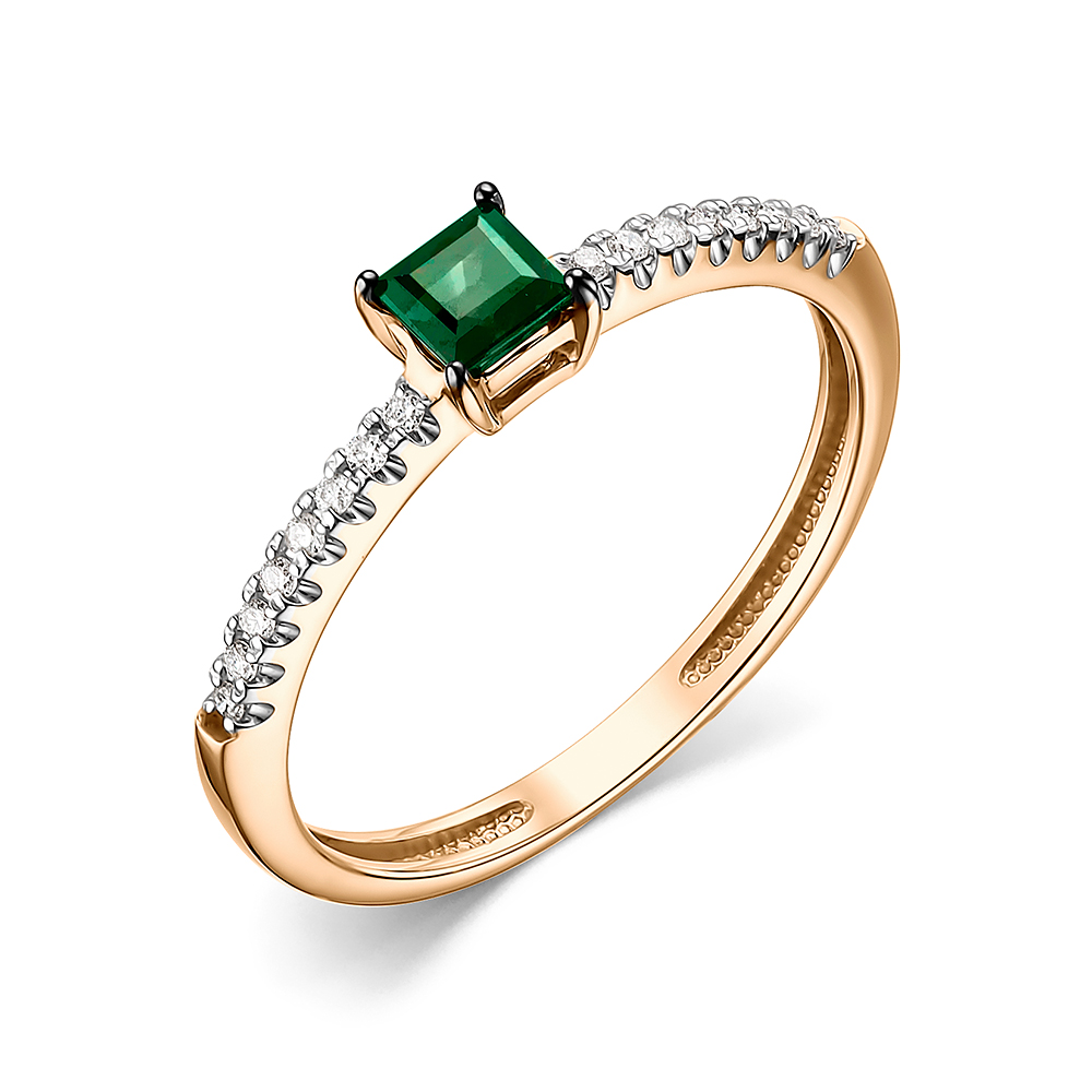 Кольцо из золота с камнем Бриллиант, Изумруд